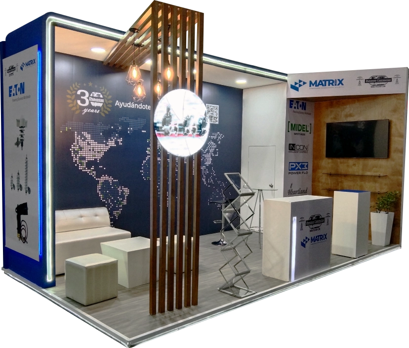 Trabajamos contigo para entender las necesidades de tu marca y crear un diseño único que refleje su esencia, capturando la atención de los asistentes.